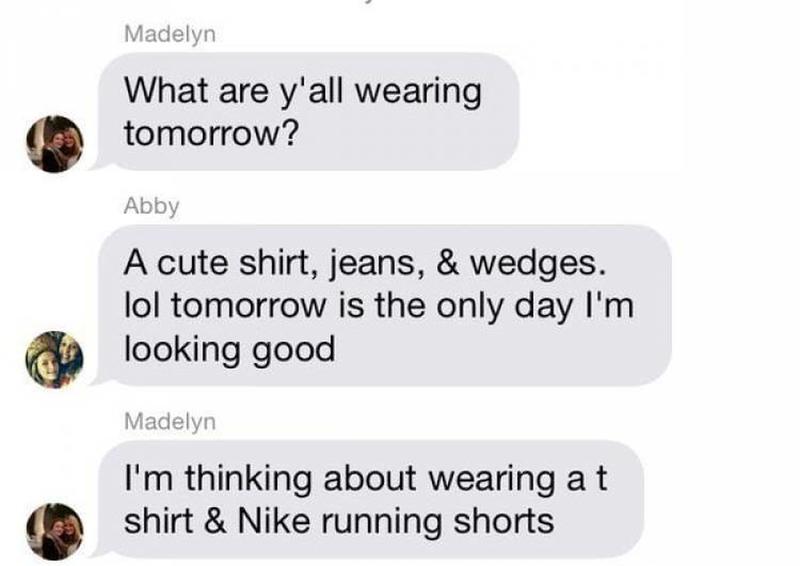 When a girl is getting ready for a costume party, she has to make a decision, is she the kind of girl who is going to be wearing a sexy costume or is she going to go the funny girl route and wear something that is unique to her own self? Very different types of girls.