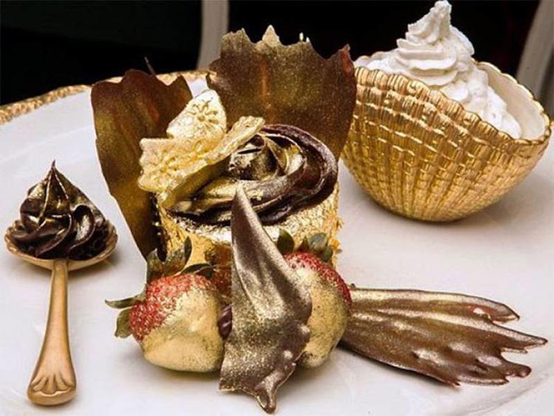 If you haven't got enough of all that gold that's surrounding, you everywhere you go fear not. In Dubai, you can eat and drink your gold too. Cocktails incorporating gold leaf and desserts that use gold leaf are a favourite. Just be prepared for the Dubai price: this plate is $1000.