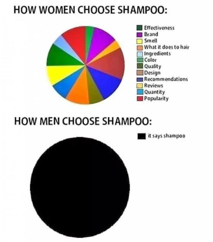 Men buy shampoo because it will wash their hair, bonus points if the shampoo will also be a conditioner and wash their body. Women need complex shampoo that will keep their beautiful prized hair in tip top shape, because growing out and perfecting your hair for years takes attention to detail.
