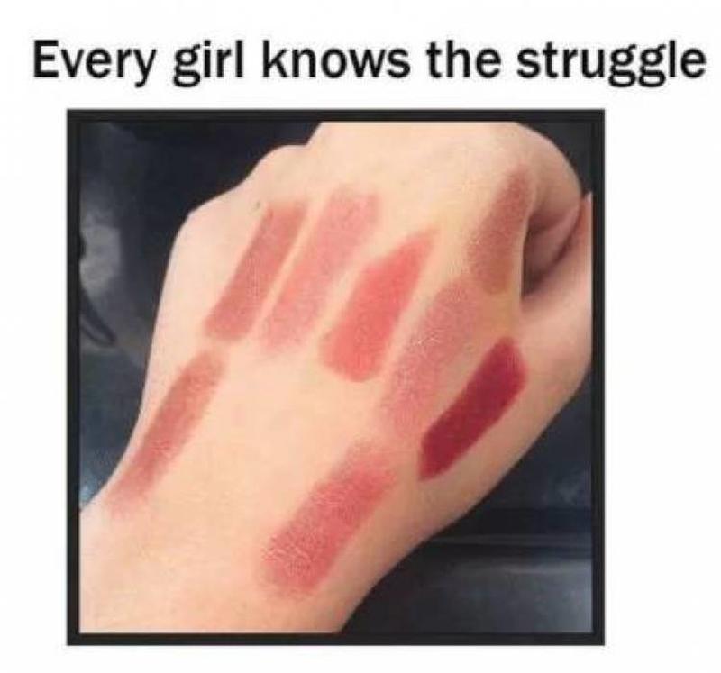 Men think women look amazing without makeup, so they don't really understand all of the effort that goes behind creating the perfect makeup look. When a women comes back from the store with stripes on their hand, it means they are collecting paint like an artist would for their palette.