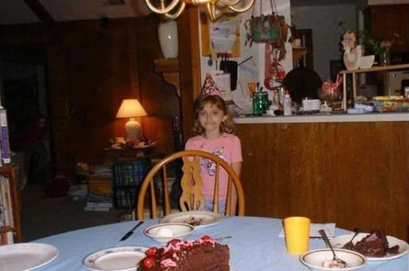 Yes, what a cute little girl smiling because it is her birthday. You would not want to ruin her day by telling her there is some paranormal activity happening right behind her. Is it weird that the person that took the picture did not realize a demon standing next to the door?