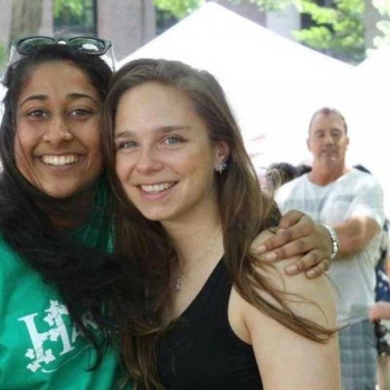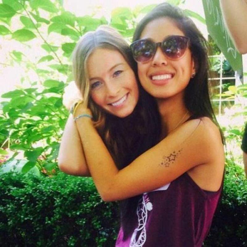 This picture is definitely an optical illusion. First, you see the two friends having a good time and then see the man casually standing in the background, not caring about whose picture he is photobombing. This picture is definitely very cute.