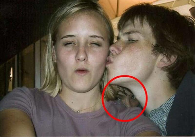 A cute couple selfie takes a weird turn. Your eyes would immediately look at the couple that is trying to confess their love but when you take a second look, you can see it. There is a third person between them, making the picture funny and slightly freaky.