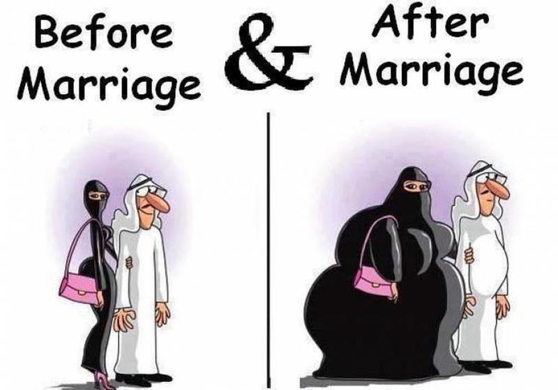 Before marriage, she used to look prettier than the night sky, and moonlight shone from her beautiful face. After marriage, the same woman resembles a crooked old woman. She has turned upside down, just like this pic.