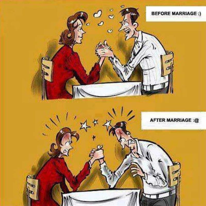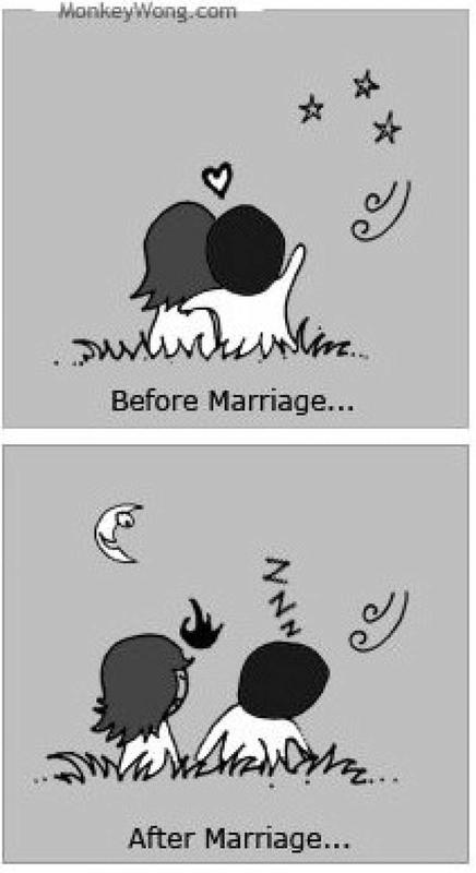 Newlywed couples don't exactly anticipate the kind of changes that usually follow after their marriage. The love, attraction and appreciation they had for each other usually begins to waver after some time it seems. Affectionate feelings which they took for granted quickly spillover into bitterness and hatred. The mere thought of spending the same day (much less night) makes them shudder, here are 15 hilarious pictures showcasing this dramatic change.