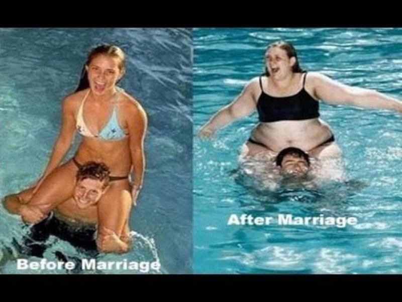 He happily holds her entire weight on top of his frail body and can barely contain his beaming smile. His soon to be wife equally excited. 5 years later, the guy can barely keep himself upright on account of her burgeoning weight. She is still excited.