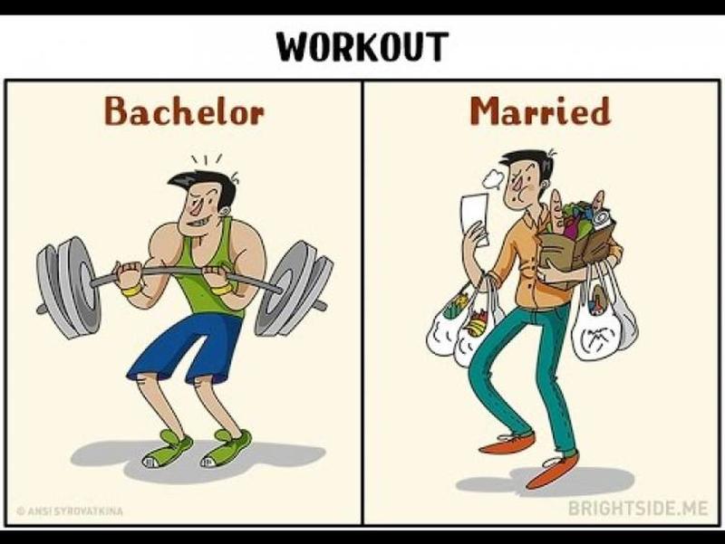Before marriage, he was also very concerned about his body's overall outlook. He would workout in the gym and make sure his muscles are up to par. A few married years later, he has a protruding belly and the barbell is replaced with grocery shops.