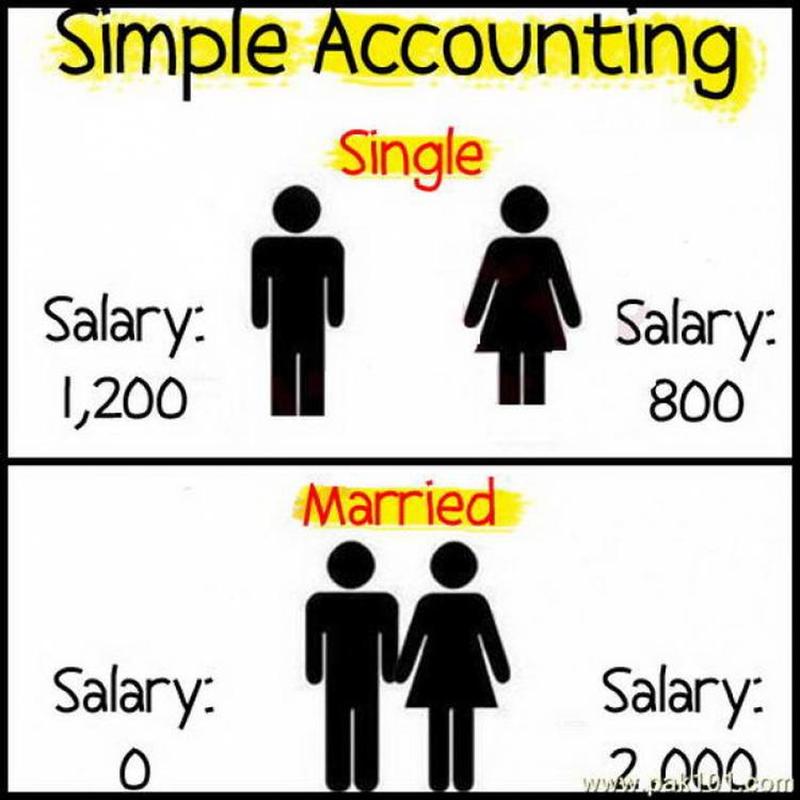 Before their marriage, it used to be that the husband would earn almost twice more than his wife. After marriage, the same guy makes exactly zero but the wifey makes almost three times as much. We'll leave it to your imagination exactly what transpired for this to occur.