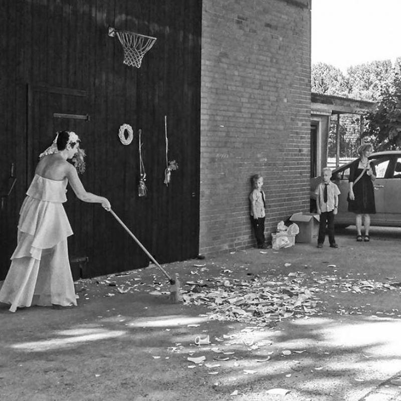 As their first domestic act as husband and wife, the couple must sweep up piles and piles of porcelain dishes from the floor during their ceremony. The guests break the dishwater around the couple in order to ward off any evil spirits that may be surrounding the couple.