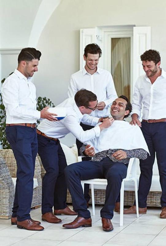 In the festive country of Greece, the groomsmen take their job literally. On the day of the wedding the groom BFF's take a straight razor and clean up the groom while the mother of the bride sits by his side and feeds him honey and milk for good luck with her daughter.