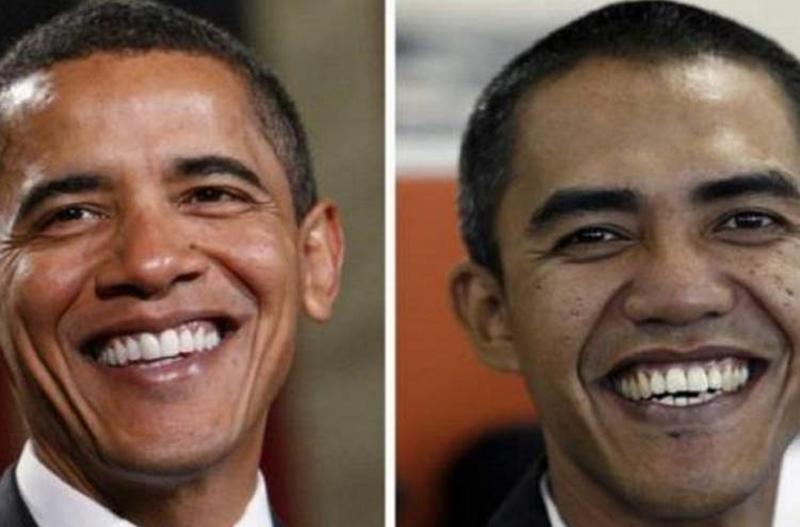 Last but not least, we have Barack Obama and his look-alike in Ilham Anas, a photographer from Java. You never know, Barack might run into his first major scandal involving illegitimate children featuring this guy. At least they'll get off his back about that tan suit he wore one time.