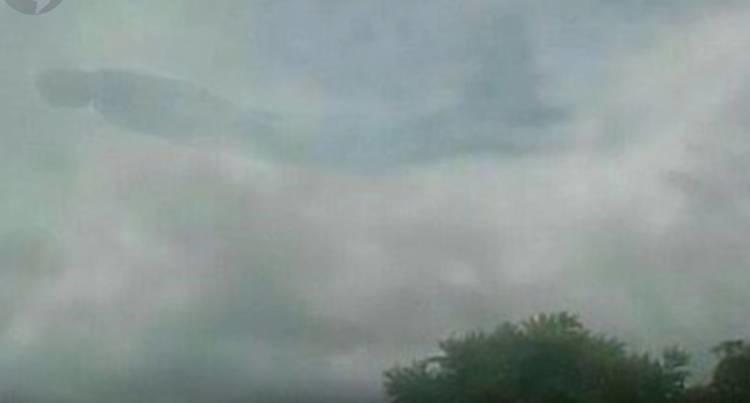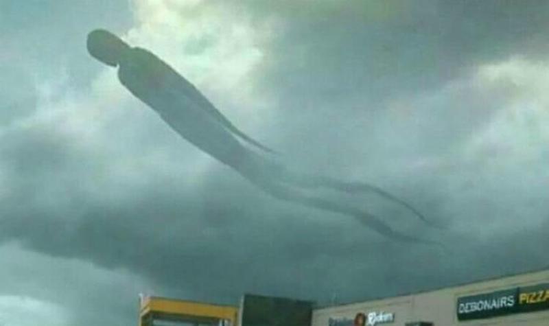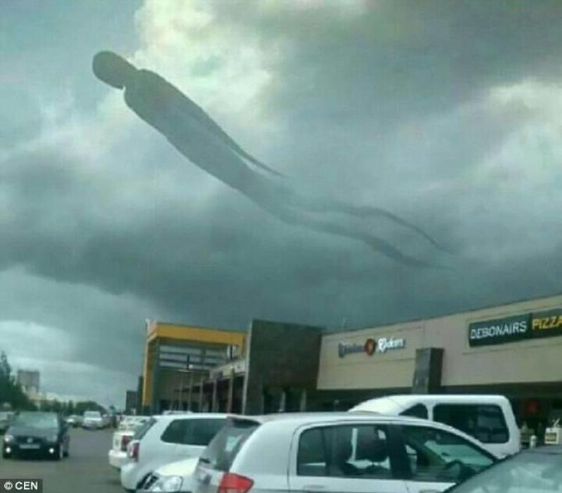 Here you can see one of the pictures captured from the Mukuba Mall of the giant ghost that appeared over the building. The dark figure looks like an undefined head with a torso fading into loose tendrils trailing behind it.