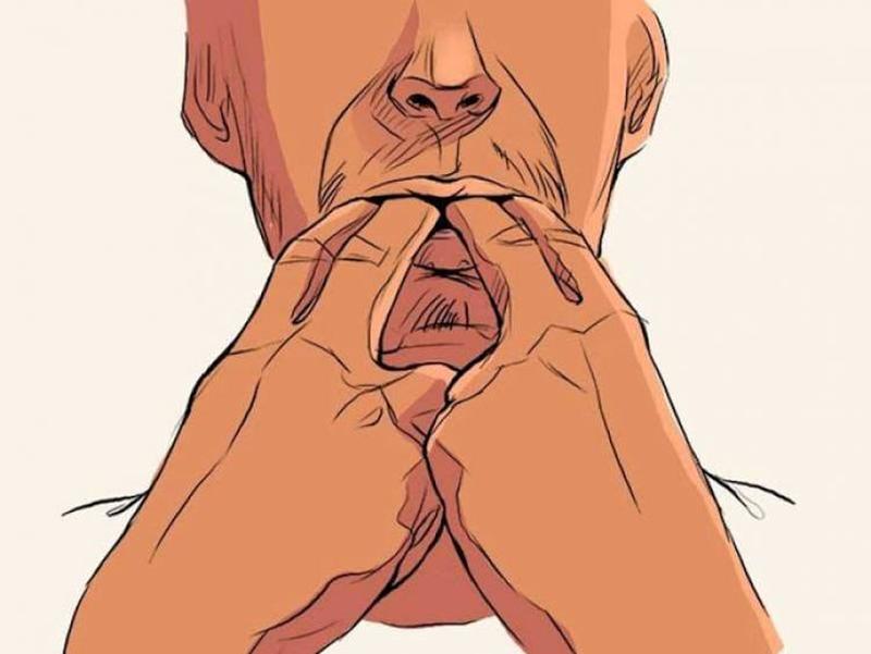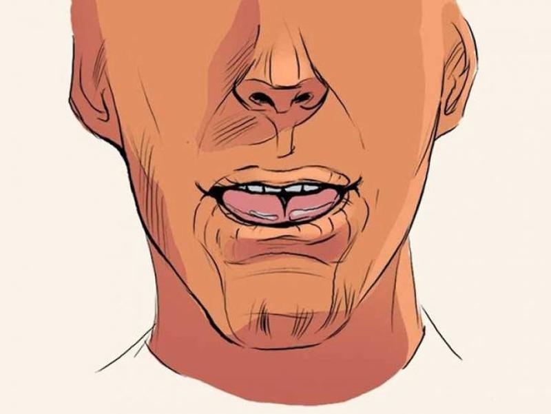 Now that your lips are covering your teeth, you need to position your teeth. You have to make a kind of claw with your thumb and forefinger, and then put them in your mouth. The fingers must be placed at the ends of your mouth, almost stretching it wide.