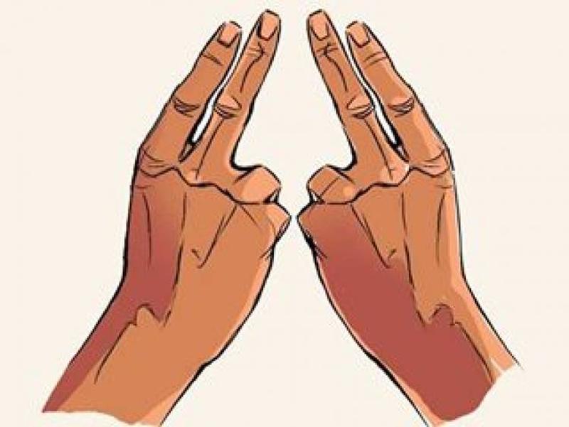To start off, you need to join the index and middle fingers on both of your hands together. Just like the picture above, try to make the letter "A" with your fingers. Once you have accomplished this, you are ready to proceed to the next step.