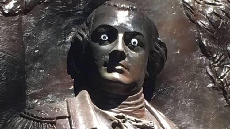 The statue was completely in tact, so whoever this prankster was did not take a play from The Simpson's handbook and chop off Nathanael Greene's head, but they did do something else to mess with the statue. The culprits put googly eyes over the statue's real eyes, giving it a comical appearance.